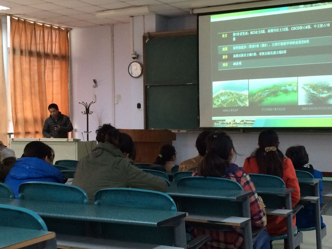 张教授首先从专业培养,目标定位,职业技能,就业前景等方面详细介绍了园林专业。接着又在转变思维方式、学习方式和生活方式等方面对学生提出了相关的要求。随后,张教授进行了学生问答活动,就同学们关心的实习培训,职业资格证书,就业选择等问题给予了解答。