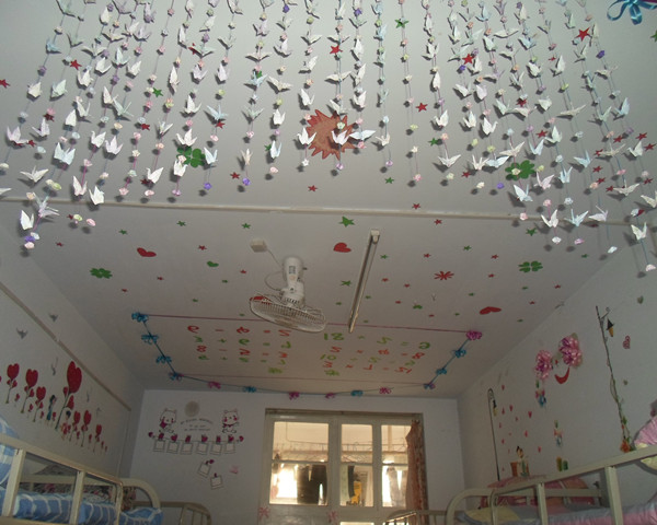 参赛的宿舍中,每个宿舍都装饰得别具一格,有的典雅别致,有的充满书香气息,有的清新脱俗,有的尽展诗情画意。个别宿舍别出心裁的为其宿舍起了雅号,如“听雨轩”、“温家堡”、“蓝色天堂”等。同学们为了装饰宿舍都是八仙过海各显神通,他们有的把书法、油画、剪纸等作品嵌于宿舍的装饰之中;有的宿舍挂满粉色气球,贴满红色玫瑰,充分体现了宿舍的浪漫与温馨;也有的宿舍亲自动手,制作的粉白相间的灯笼,简约而不失优雅,墙边长长的篱笆也充分体现了田园风气……宿舍风格迥异的装饰让评委们眼前一亮,赢得了一致好评。最后,生活部部长公布了得分较高的宿舍名单,并对此次宿舍评比活动做了总结。