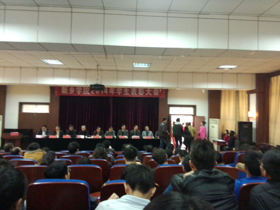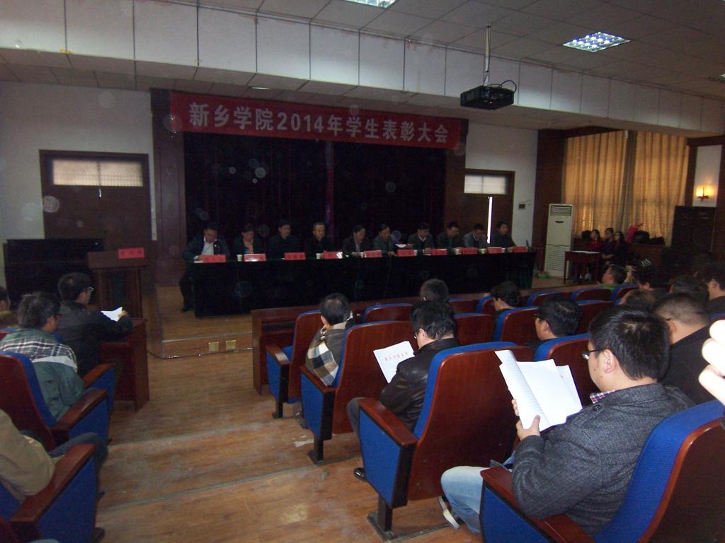 11月18日下午三点整,我校于1号楼报告厅召开“新乡学院2014年学生表彰大会”。校党委副书记陈贞忠、副院长刘翔出席大会,学生处、团委和体育系主管学生工作的领导、团总支书记、辅导员、受表彰的个人、学生代表以及各院系代表参加了大会。会议由学生系统党总支书记、学生处副处长沈银华老师主持。