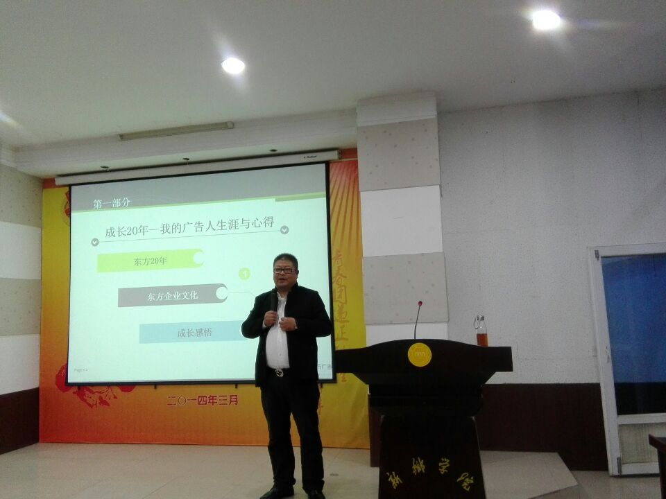 为了扩大同学们的视野,丰富同学们的知识,加深同学们对营销知识的了解。于11月27日下午三点,东方广告公司董事长尚军莅临商学院并在A—05楼报告厅开展了关于广告于营销知识的讲座。