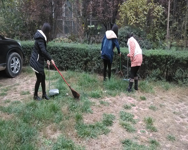 参加此次活动的是数学学院2014级数学与应用数学一班的学生。虽然天气寒冷,但是同学们的热情依然高涨,心怀感恩之心为老师们打扫公寓。在划分了打扫区域后,同学们便拿着卫生工具积极的行动起来。在活动中同学们都积极的打扫卫生,你追我赶,无论是院子里的落叶,还是小树林里隐蔽的垃圾,他们都一一清扫干净。擦楼梯扶手的同学更是认真负责,把楼梯扶手擦得一尘不染,使得整个教职公寓焕然一新。