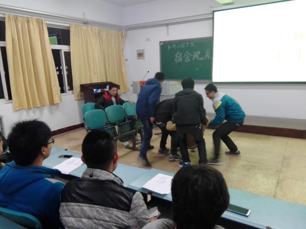 为丰富同学们的课余文化生活,展示每个宿舍别样的风采,11月28日晚七点,机电工程学院在A06-509举行宿舍风采大赛第一次彩排,学生会各部长参加彩排并担任评委。