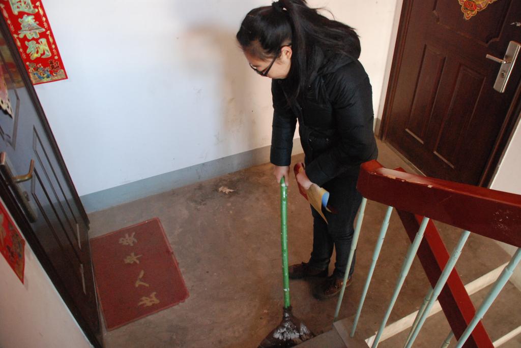 活动开始前,参与此次活动的班级由班长组织在国旗广场前集合。接着由此次活动的负责人带队前往学校教师公寓。在打扫卫生过程中,同学们扫地的扫地、拖地的拖地、洒水的洒水,工作分工明确,态度一丝不苟。同学们并没有因为楼道里的灰尘过多而偷工减料,认真的干活,不放过任何的边边角角,把教师公寓打扫的干干净净。