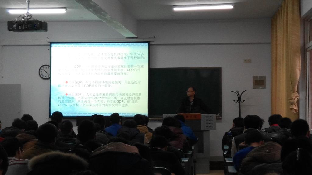 讲座上,机电工程学院的老师隆重介绍了席俊杰教授,场下瞬间爆发出热烈的掌声,以此表达对席教授的热烈欢迎。随后,席教授先从传统生产入手,介绍了全球生态危机的出现,及传统制造的工业发展所暴露的种种缺陷。他旁征博引地解释绿色制造,告诉同学们世界发展与生态环境之间的关系越来越紧张,绿色GDP将剔除传统意义上“扣除不真正财富积累的虚假部分”,成为衡量一个国家或地区真实的发展和进步的标准,这引起了机电工程学院的同学们的思考与重视。