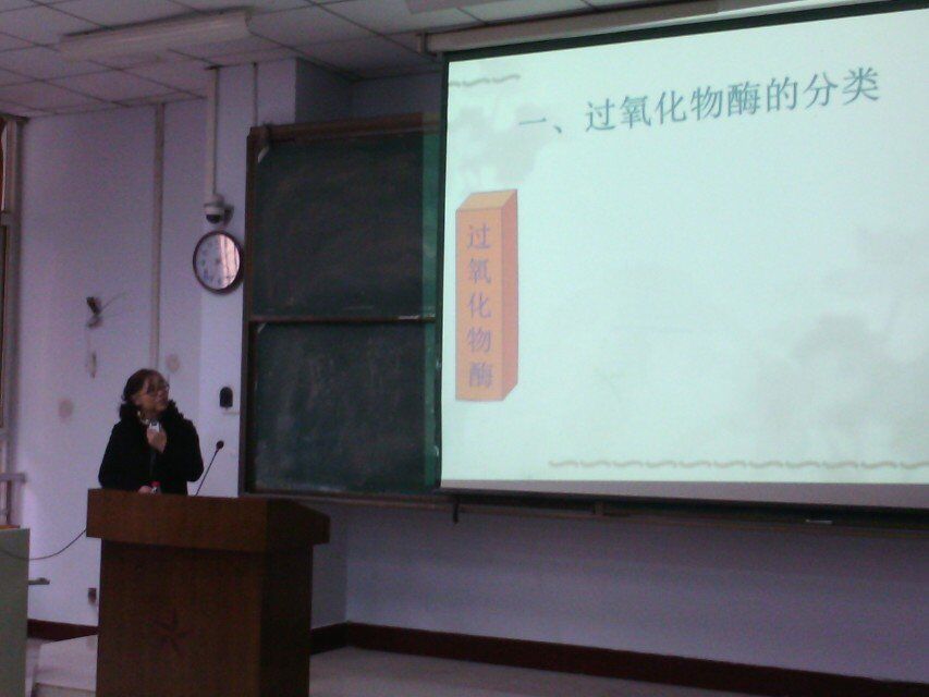 会议开始,团总支书记刘兴洋老师对王林嵩教授莅临生命科学技术学院表示感谢并介绍了王教授在教书育人方面的成绩。他对王教授的专业知识、师资、师德均表示肯定,并告诫学生要以名师为榜样,积极进取。王林嵩教授长期以来从事生物化学的教学与科研工作,尤其在酶的结构与功能,酶的分离纯化及酵母菌表达方面取得一定成绩,在BBA等SCI源期刊及国内重要刊物发表论文50余篇,有多项省部级科技成果及教学成果,并多次获省部级科技成果奖和优秀论文奖。在报告会上,王教授主要针对酶方面的知识对大家做了讲解,其精彩的学术报告赢得了在场老师和同学们的阵阵掌声。