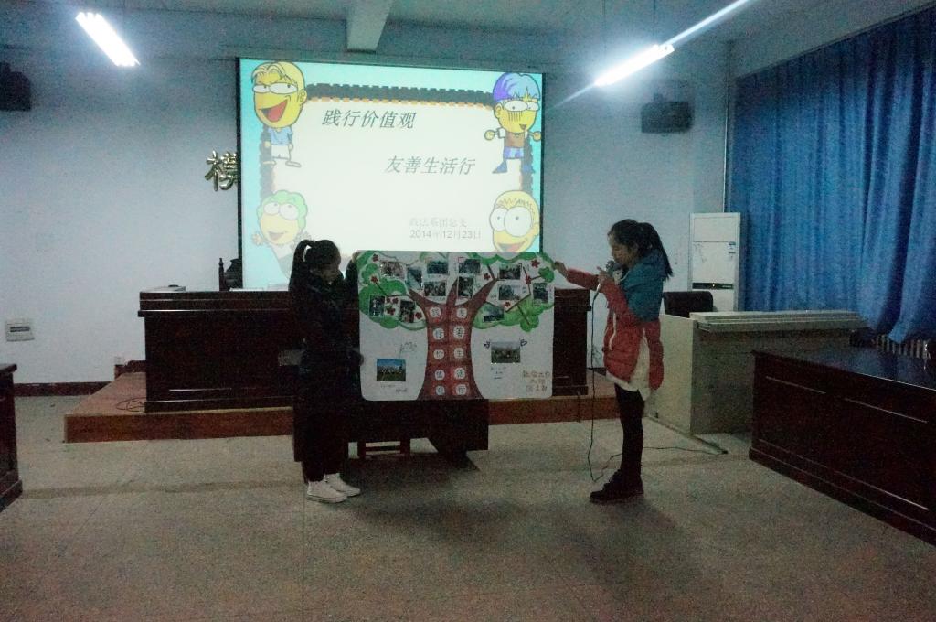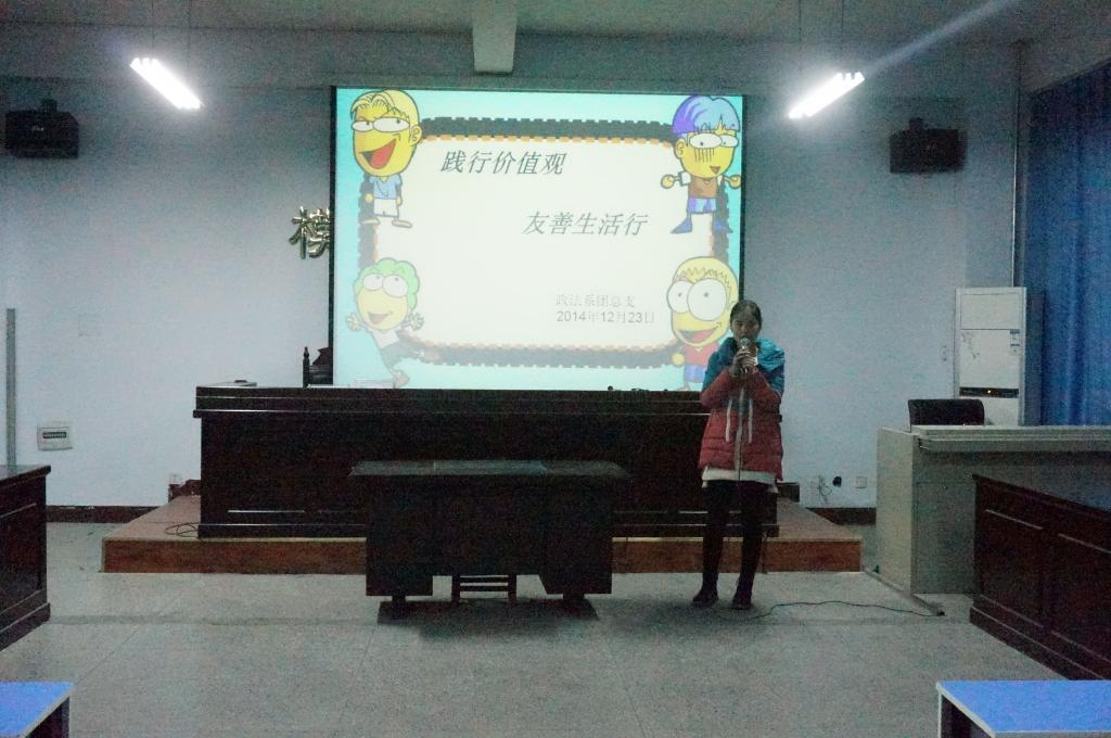 为弘扬社会主义核心价值观,传递青春正能量,12月23日晚7点政法系13级、14级四个团支部在A-01模拟法庭召开了“践行价值观友善生活行”主题教育活动。