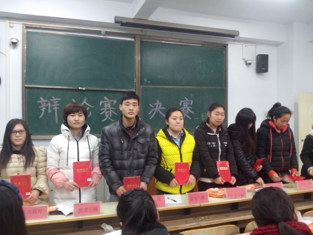 为进一步促进同学们之间的文化交流、提高自身素质,外国语学院于12月23日晚7:00在A11-313教室举行了辩论赛活动。