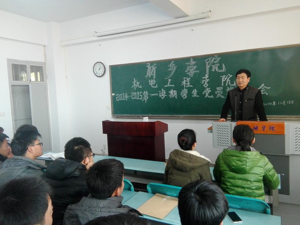 为提高学生党员的党性修养,严肃党风党纪,12月18日下午,机电工程学院在A06-508教室召开学生党员培训大会,此次大会由党总支副书记王保学主持,团总支书记陈佼佼及辅导员老师李峥出席会议。