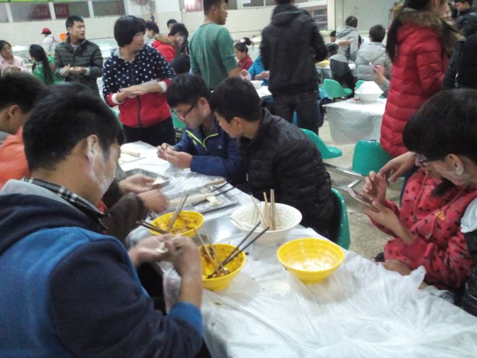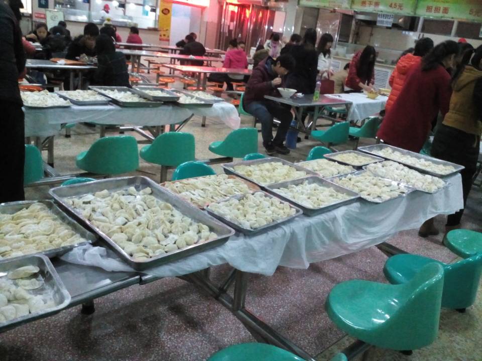 各位同学自由结合在一起,欢快而融洽的进行此次活动,他们分工明确,各司其职,有人负责揉面,有人负责韩面皮,负责包馅,同学们相互帮忙,相互教导,还好包好的饺子形状和成色都还不错,随后由食堂的阿姨将包好的饺子煮熟,所有的人开始动工吃饺子……整个过程同学们都忙的不亦乐乎,到处充斥着欢声笑语,呈现出其乐融融的画面。