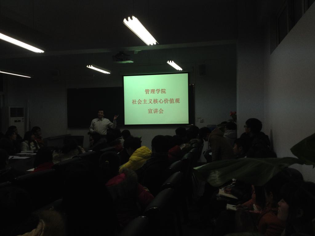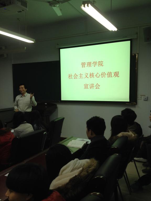 为全面培育和践行社会主义核心价值观, 1月5 日管理学院在A03二楼会议室召开社会主义核心价值观宣讲会。