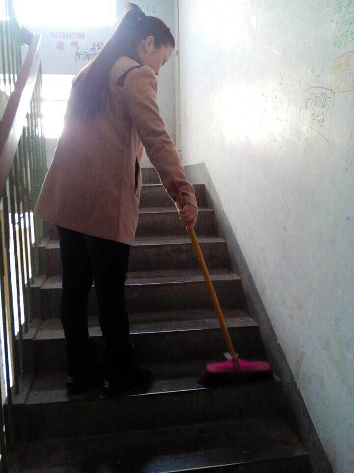 同学们走进了公寓楼,分工合作,认真仔细的打扫公寓楼内楼梯间的卫生。之后,同学们又来到公寓楼外,一丝不苟地清理地面上的垃圾,墙面的小广告等。同学们不怕苦不怕累,全面响应党的号召,通过自己的双手,使公寓楼的面貌焕然一新,为我校教师的生活环境出一份绵薄之力。