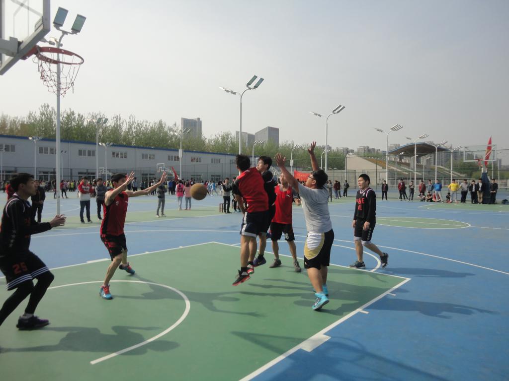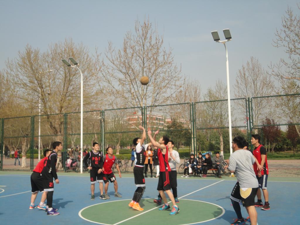初春的时光,拼搏的球场。于4月7日下午,“2015大学生春季篮球联赛”淘汰赛正在火热进行中,物电学院男篮对抗艺术学院男篮的比赛也在西区篮球场顺利开赛。
