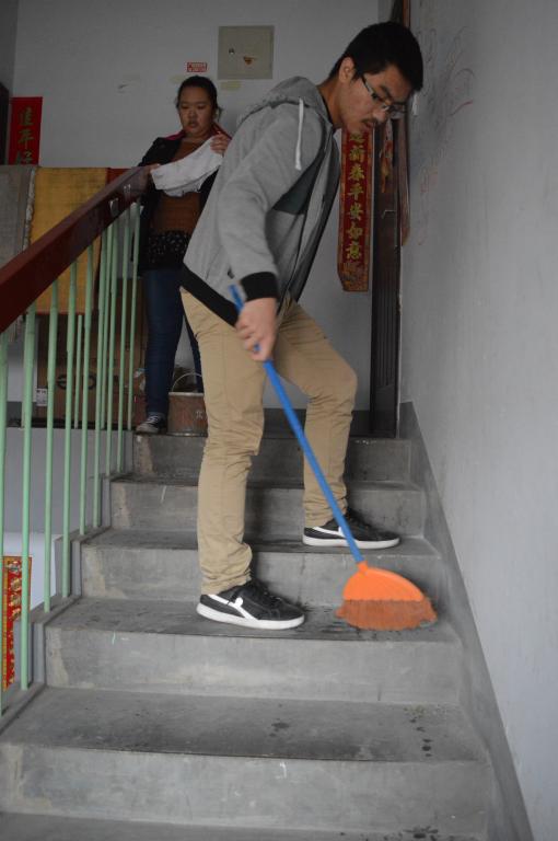 活动开始前,同学们在国旗广场进行集合,并由此次活动的负责者带队前往教师公寓。在打扫过程中,同学们清洗了扶梯,还清除了小广告及堆放在楼道里的杂乱品,带来了干净、整洁的卫生环境。