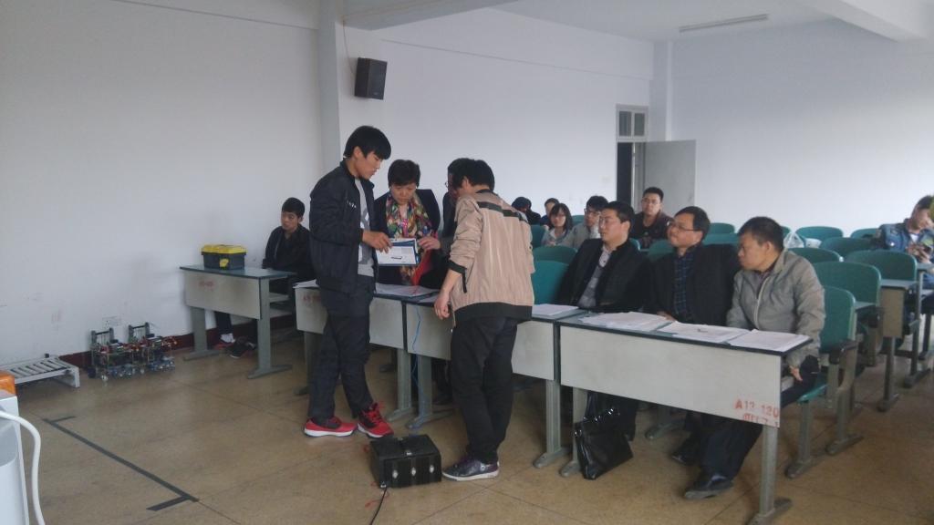 此次大赛由机电工程学院党总支副书记王保学、副院长魏增菊、团总支书记陈佼佼和辅导员老师郭连心及物理与电子工程学院刘俊峰老师担任评委。此次参赛作品均属于科技发明制作类,参赛同学分别从各自作品的的实用性、创造性、操作性等方面对作品展开了详细介绍,幽默风趣的谈吐、自信轻松的表情给评委留下了深刻的印象。历经三个小时,大赛接近尾声,评委老师对大赛做出总结性点评,并鼓励同学们要再接再厉,争取取得更好的成果。最后,本着“公平、公正”的原则,获奖结果将于周五进行公布。