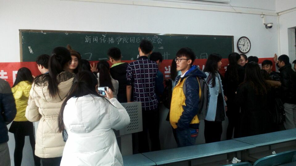 12月8日,新闻传播学院在A14-615举行了以“铭记一二九,共筑中国梦”为主题的演讲比赛,并在演讲比赛结束后进行了一二九主题条幅的百人签字仪式。
