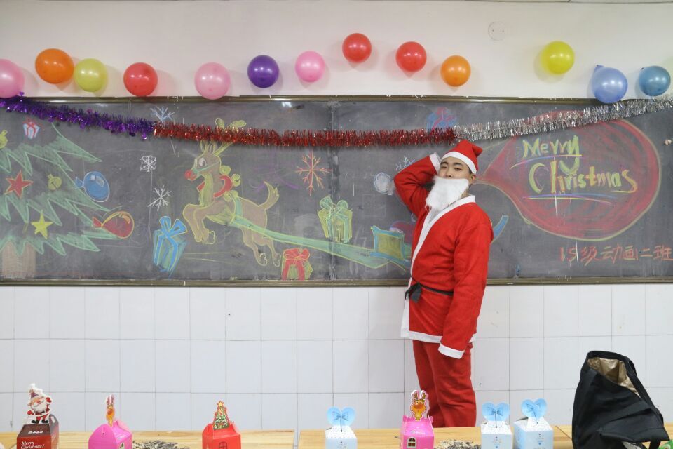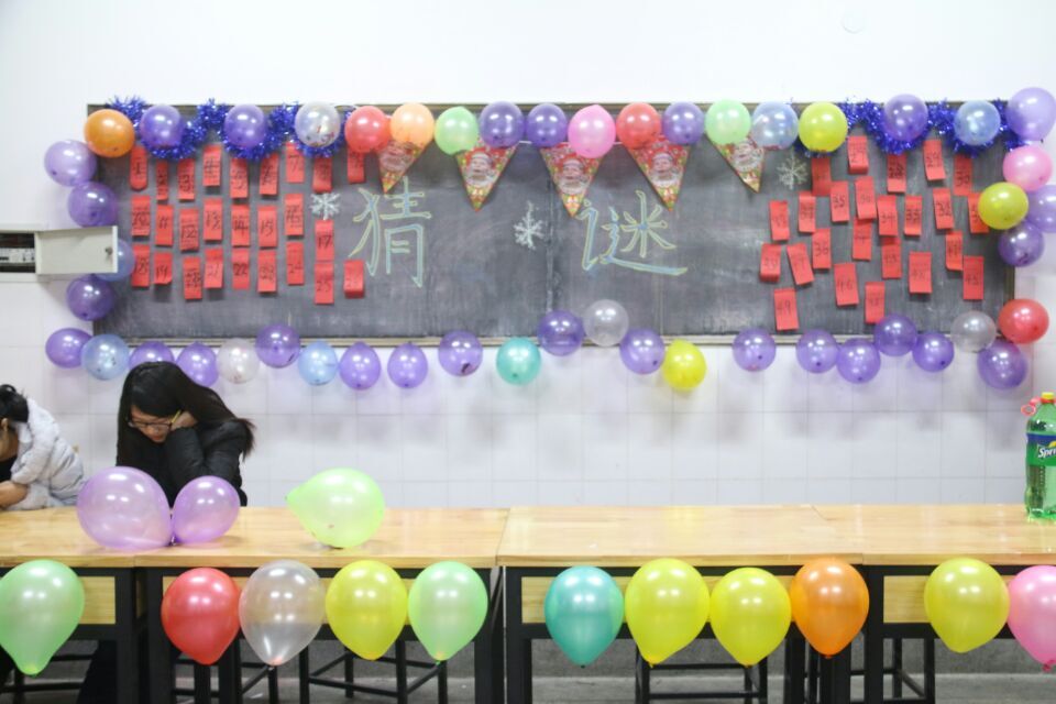 活动刚开始便随处可见由各班代表装扮的圣诞老人热情地邀请同学们参加各种游戏,每个房间的装饰都令人目不暇接,各种奖品也是琳琅满目,游戏项目的惩罚也都风格迥异,不但令参与者哭笑不得,也让观众们看的津津有味。每个游戏项目的参与者与围观者数不胜数,整个活动过程中笑声绵延不断。