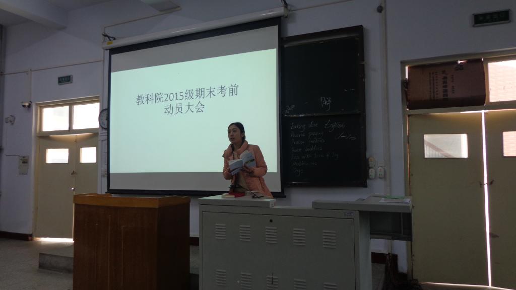 为了端正考风,营造良好的考试氛围,教育科学学院于12月29日中午12:00在A11-226开展期末考试动员大会,教育科学学院2015级全体学生参加了此次动员大会。