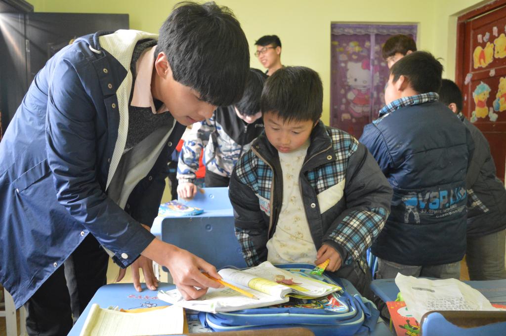 在组织部老师和学生干部的带领下志愿者们顺利到达目的地,孩子们用爽朗的笑声迎接志愿者们的到来。在院长的组织下,志愿者细心的给孩子们检查作业,并耐心的给孩子们讲解难题。春日、暖阳,志愿者与孩子们一起荡秋千,孩子们用他们温暖的小手和甜美的笑容表达着对未来无限的向往。时光易逝,相处的快乐时光加深了志愿者对留守儿童的关心,同时也让小朋友们感受到来自社会的关怀。