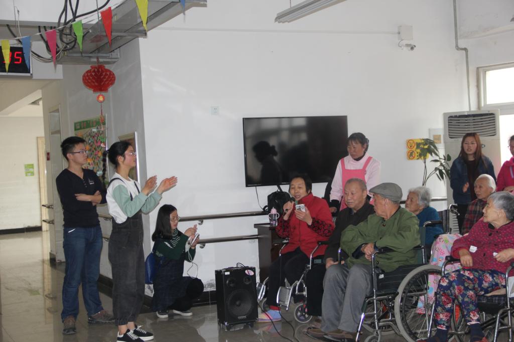 活动在背景音乐《夕阳红》的旋律中拉开序幕。在场的每一位老人和学生都认真听着主持人讲解活动规则,并怀着饱满的热情迅速投入活动中。老人和同学们一起唱歌、跳舞,每个人脸上都洋溢着开心的笑容。老人们主动和同学们分享了自己对岁月变化的感慨和对往事的回忆,引起同学们对人生的另一番思考。活动得到了养老院负责人的肯定和赞赏,最后在热烈的气氛中圆满结束。