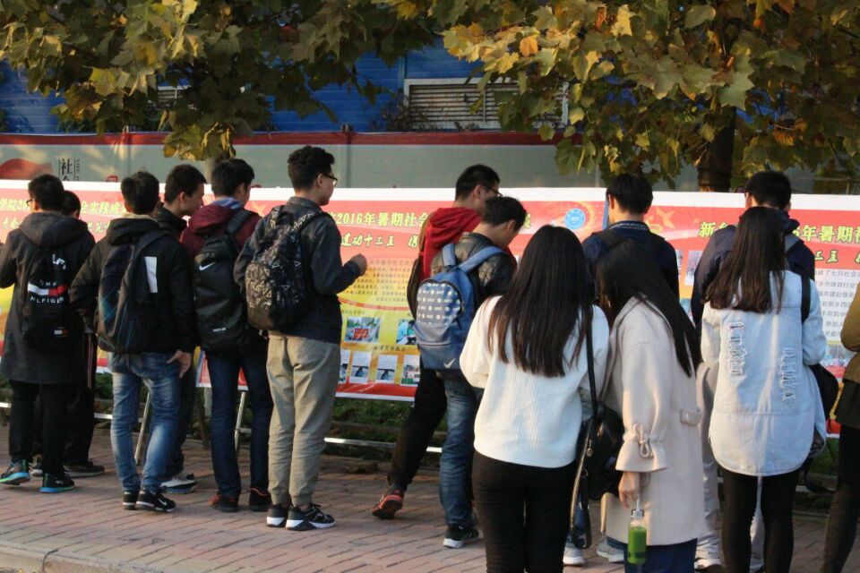 为了展示新乡学院各院系2016年暑期社会实践成果,鼓励学生积极参与社会实践,商学院于11月4日至11月11日成功组织了全体学生参观暑期社会实践宣传牌活动。