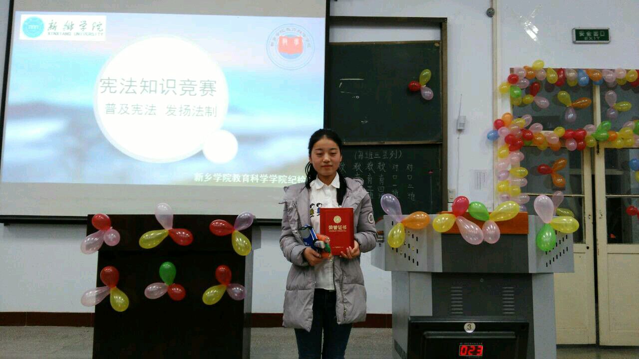 比赛开始前,由主持人宣读此次大赛的规则,此次比赛分为“疯狂抢答”、“勇攀高峰”两个环节,分别以选择题和判断题两种形式考察选手们对宪法知识的掌握能力。比赛过程中选手们沉着应对,活跃的思维、精彩的答题,将比赛推向一个又一个高潮。在比赛中场休息期间,又穿插了绚烂的“魔术”,再次让现场掀起一个高潮。经过一番脑力较量,最终16级学前对口1班、教育2班荣获一等奖,16级教育4班荣获二等奖,16级教育3班荣获三等奖,16级学前对口2班、教育1班荣获优秀奖。