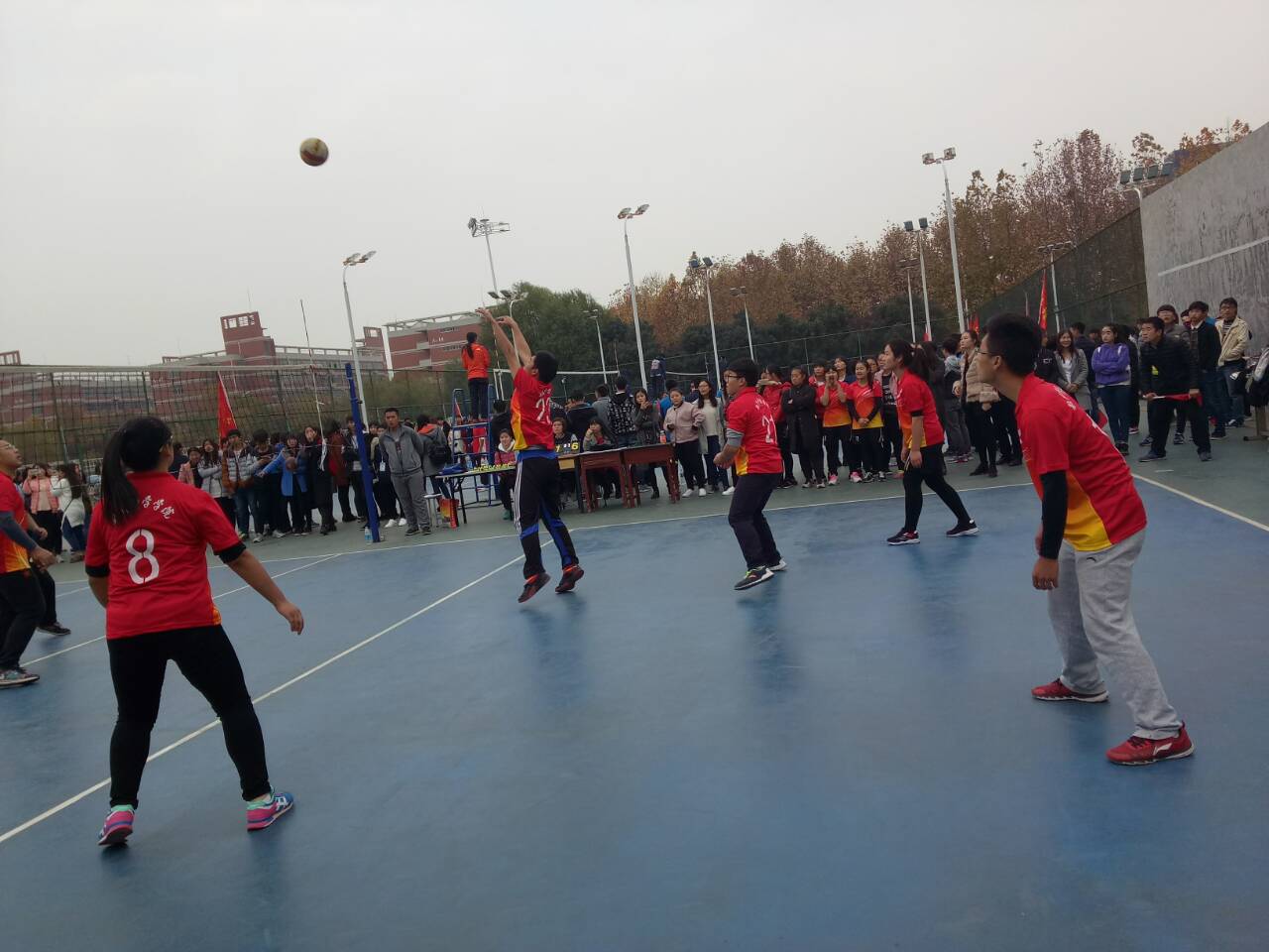 寒冷的天气并未影响队员们比赛的热情,我院选手早早抵达赛场做赛前热身准备工作。比赛上半场,我院选手配合默契,攻守得当,身手敏捷,以25:23的成绩领先音乐系。下半场,我院选手乘胜追击,敏捷的垫球、传球,精准的扣球,努力拼搏,团结协作,娴熟的技术和默契的配合赢得了现场观众阵阵掌声,经过激烈比拼,我院以25: 13的比分胜出。两局比赛后,我院最终以2:0的比分首战告捷。