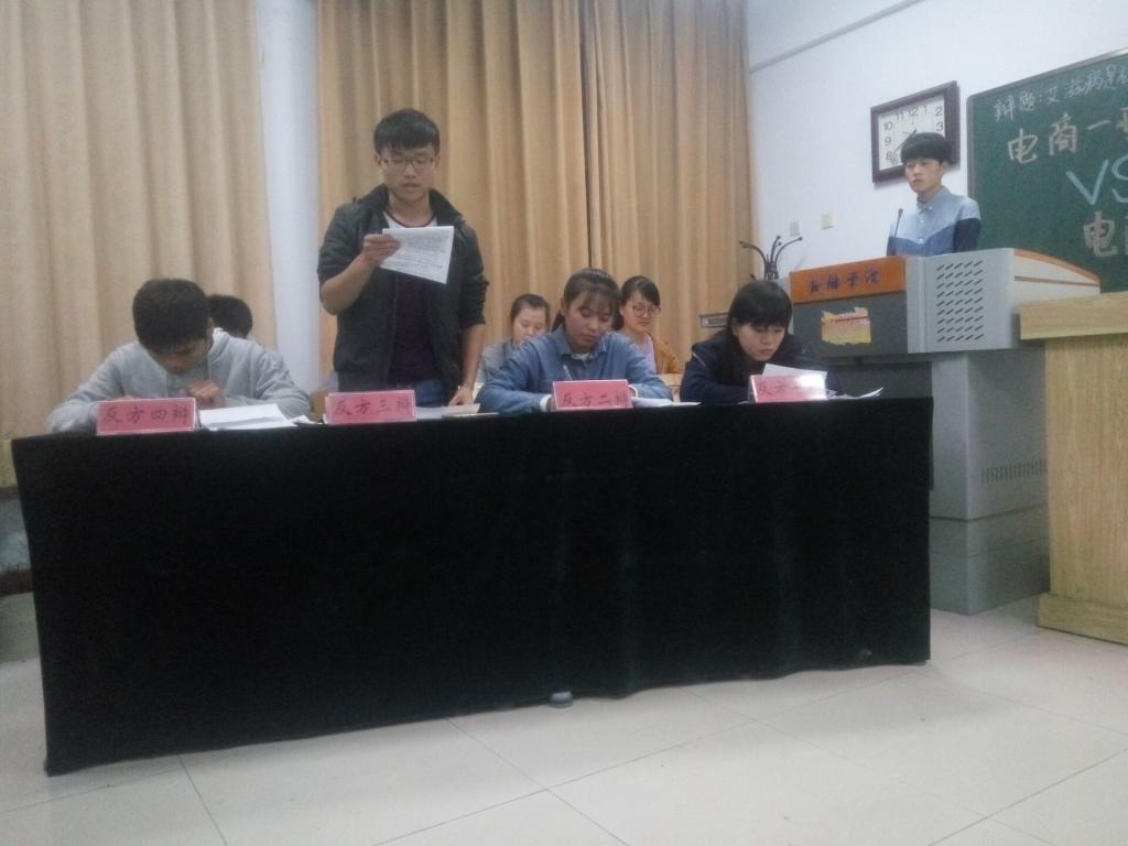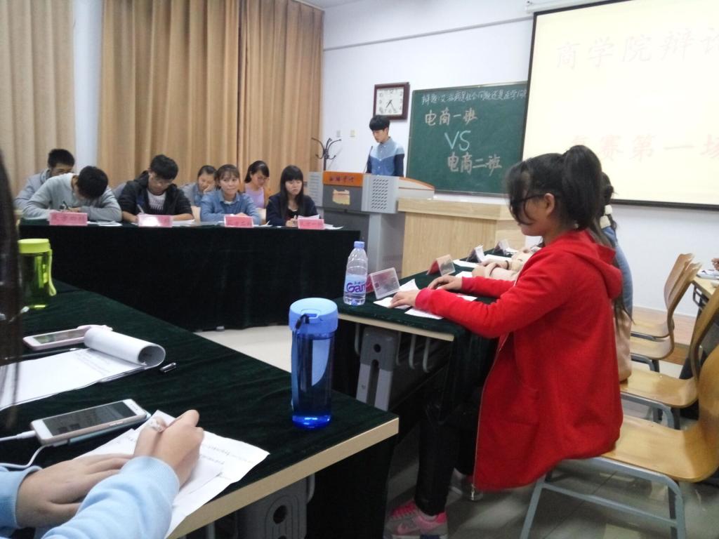 为了提高大学生语言表达能力,丰富大家的课余生活,商学院于11月15日举行由学习部承办的辩论赛复赛第一场。此次辩论赛由万启杰主持,管理学院辩论队队长赵俊涛及商学院李凯、庄国庆、付小峰、郑莎莎、禇文妍、谢琳等人担任评委。