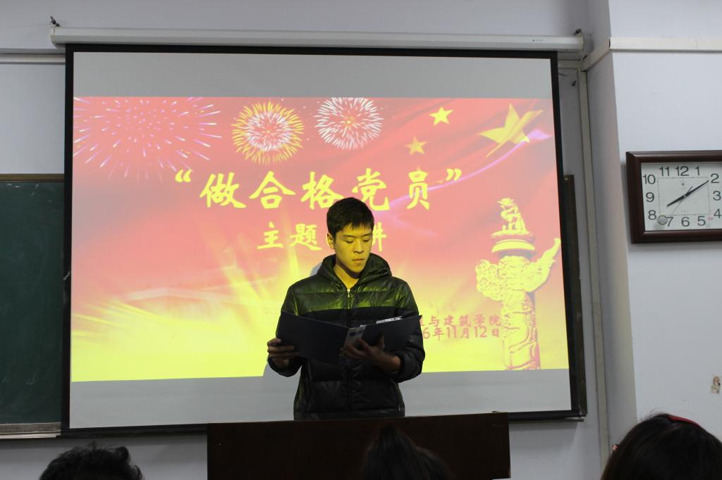 为进一步了解共产党,提高对党性的认识,土木工程与建筑院学生党总支部组织的“做合格党员”的演讲比赛于11月12日在A14-525教室隆重举行。我院参加第十九期党课培训的同学参与了此次活动,学生会学习部干事担任此次比赛的评委,活动由团总支副书记许阳阳主持。