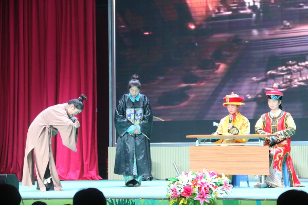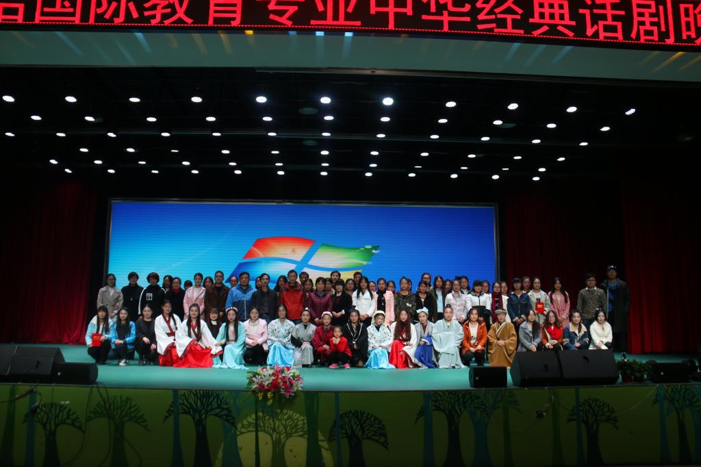 晚会于七点正式开始。首先由15级汉语国际教育的同学们带来《木兰辞》、《梁祝》等话剧的表演。演员们的表演淋漓尽致地展现出中华经典蕴含的深意。接着文学院话剧团友情演出了《倾城之恋》,专业的演技赢得了在场观众的的认可及掌声。其间古筝、舞蹈和手风琴的表演以及有趣的游戏环节更丰富了晚会的主题,观众们意犹未尽。张子涵小朋友的古筝《山丹丹花开红艳艳》更是将晚会的气氛推向一个高潮。最后由各位评委老师为获奖的话剧颁奖并合影留念。晚9点,晚会圆满结束。