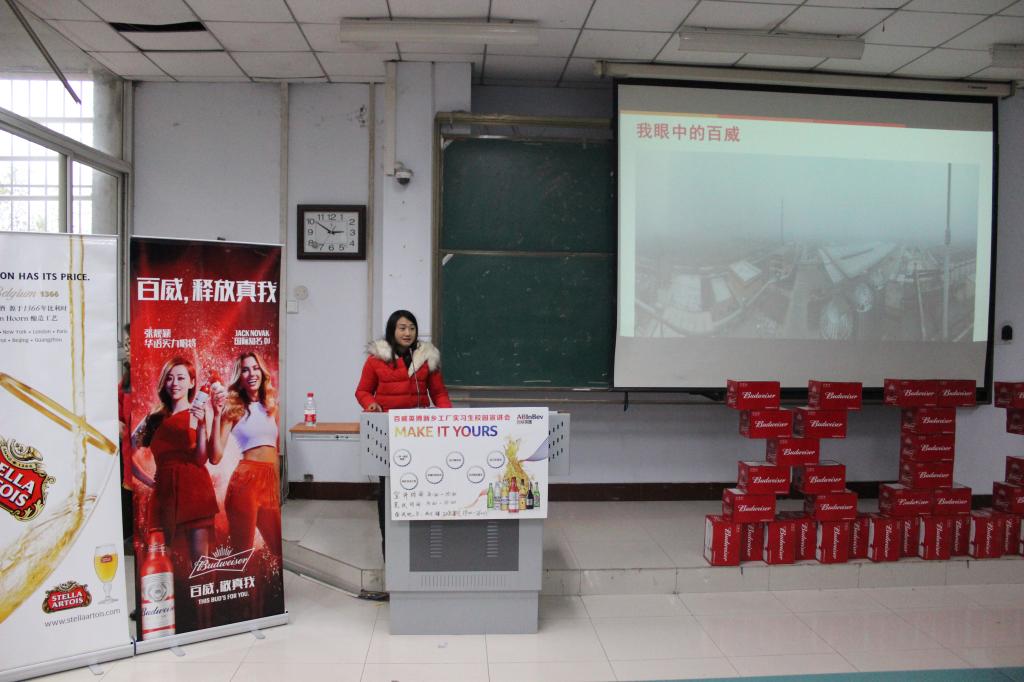 此次招聘会分宣讲、笔试和面试三个环节。首先,百威英博集团主持此次宣讲的负责人介绍了百威英博集团的综合实力和招聘需求,期间她多次提出问题与同学们互动,并通过照片展示了百威英博集团员工的福利条件。然后,由在百威啤酒集团就业的生命科学技术学院往届毕业生讲了自己的工作情况和感想,他们鼓励大学生积极就业,尽快为社会做出贡献。宣讲结束后,百威英博集团对参与招聘的人员进行了笔试,并在晚上对笔试通过的同学进行了面试。