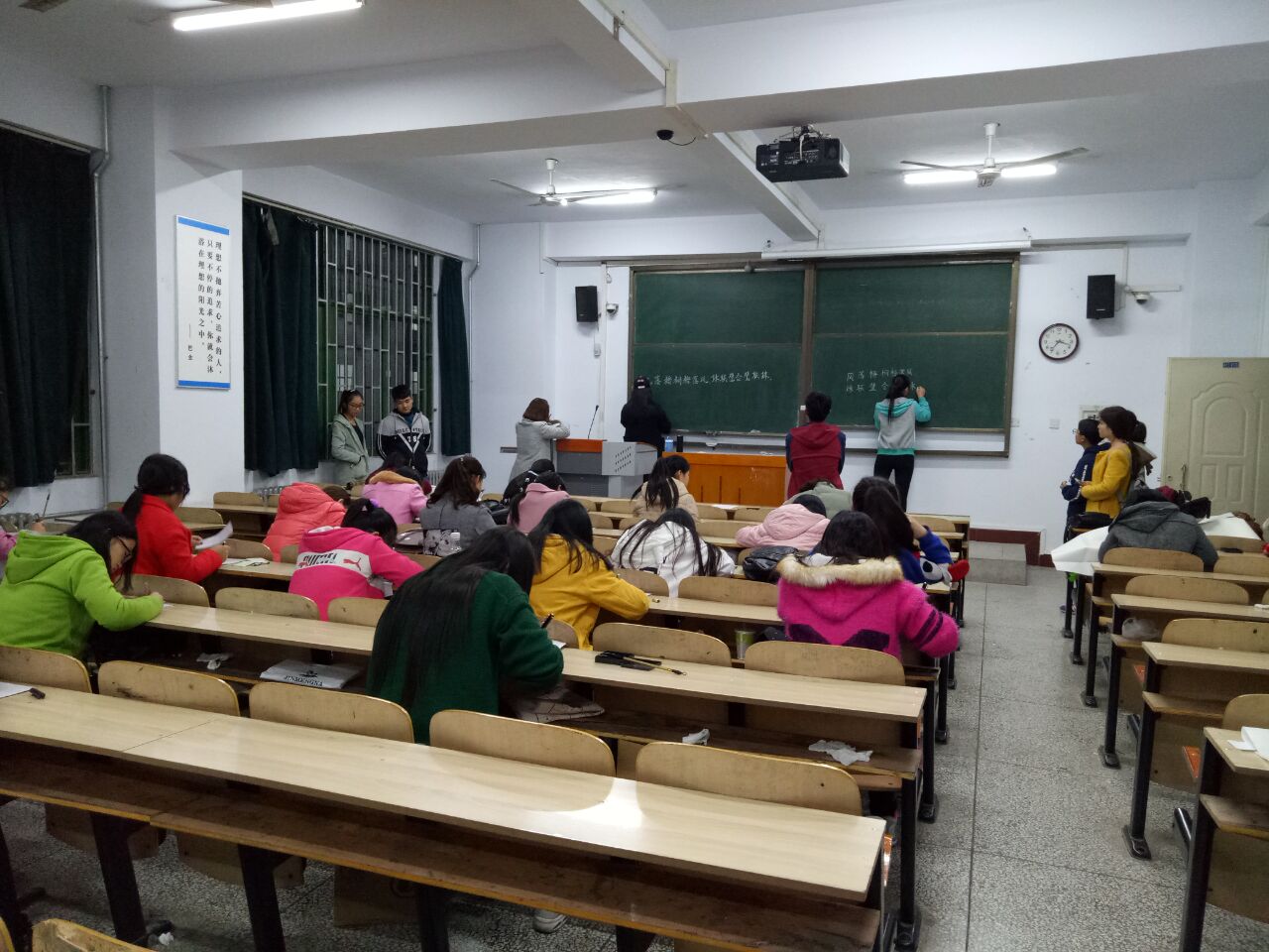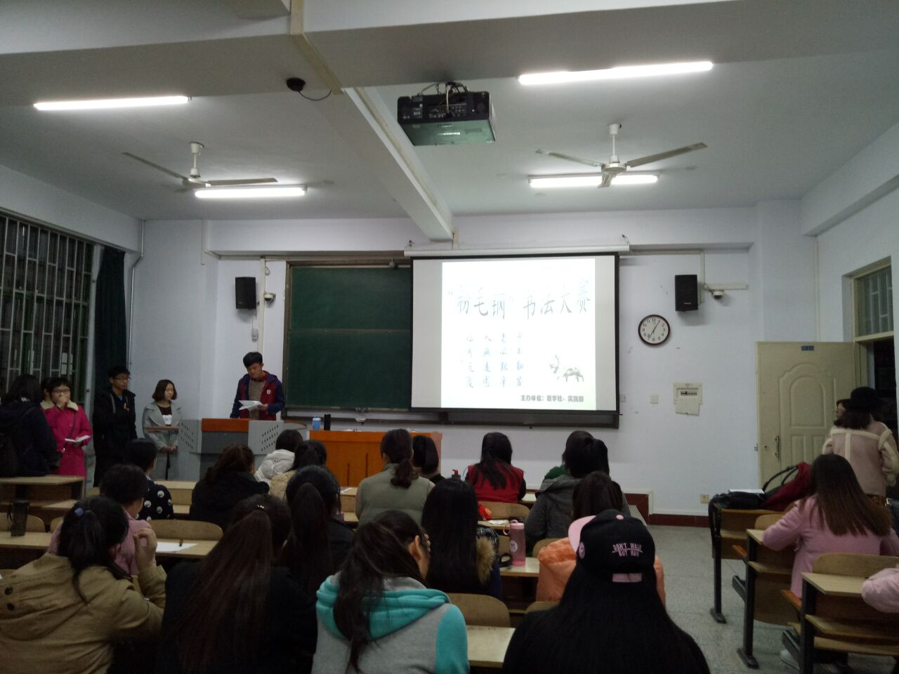为了使广大同学进一步增强对书法艺术的热爱之情,提高学生的文化修养、文明素质和专业技能,促进院系良好学风的形成,教育科学学院实践部协同国学社举办以“积前人之学,浴墨林之风,传承书法风采,共创魅力校园”为主题的“粉毛钢”书法技能大赛此次大赛于11月14日晚上七点在A11-113教室开展。