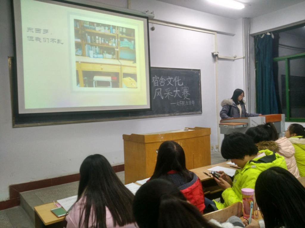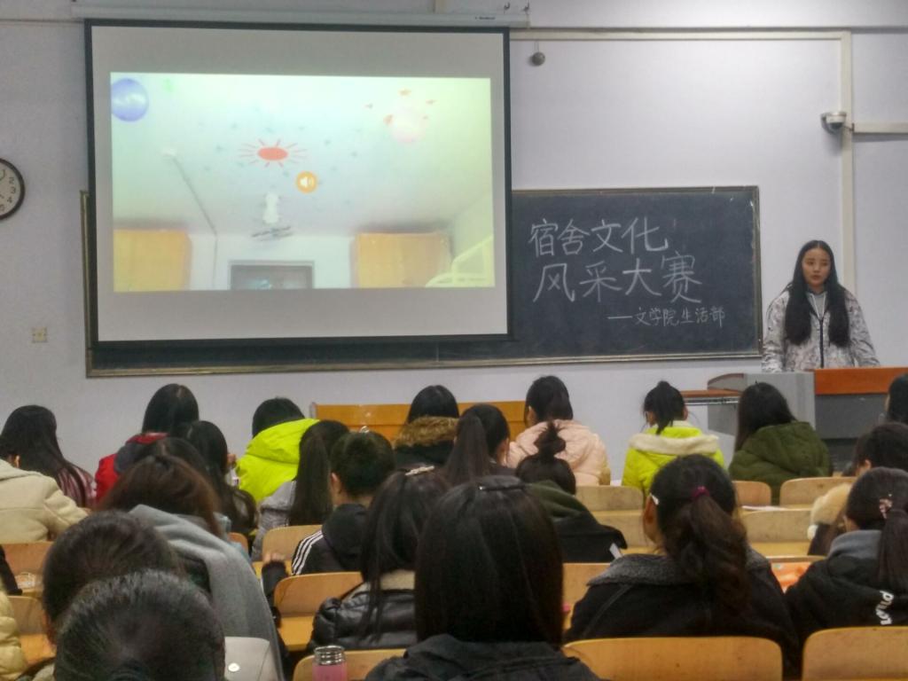 为进一步营造温馨舒适的寝室环境,丰富大学生的宿舍文化生活,文学院学生会生活部于11月24日晚上7点在A01-512教室举办了宿舍文化风采大赛。
