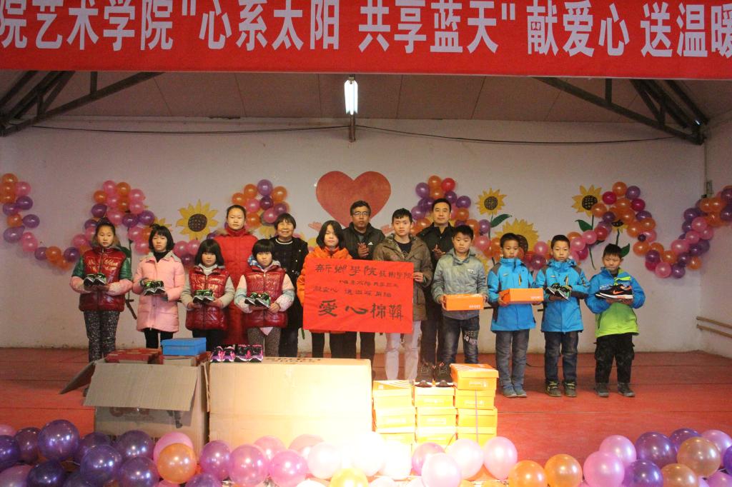 活动开始前,首先由新乡学院艺术学院主持人代表全体师生向太阳村儿童及爱心妈妈表示了衷心的问候,并由艺术学院团党支书记刘河发表讲话,表达了对太阳村孩子们的关怀以及表示了对艺术学院“心系太阳,共享蓝天”未来活动的大力支持发展太阳事业。之后,由太阳村王敏院长进行讲话,讲话中提到了太阳村孩子们在冬天受冷的难题及在社会各界爱心人士的帮助下筹款买煤解决难题,使孩子们感受到来自四面八方的温暖,并对新乡学院艺术学院捐赠冬日爱心棉鞋表示感谢。随后,捐赠仪式正式开始,小朋友们按秩序上台领取温暖棉鞋,他们拿到棉鞋后都露出了灿烂的笑容。接下来,由艺术学院同学和太阳村儿童为大家带来了精彩缤纷的表演节目,艺术学院的同学们展现出了青春的活力与热情,太阳村的小朋友们则是天真烂漫与活泼,他们精彩绝伦的演出,赢得了在场观众的阵阵热烈掌声。在欢声笑语中此次献爱心送温暖活动圆满结束,会后艺术学院师生与太阳村儿童合影留念,场面温馨。