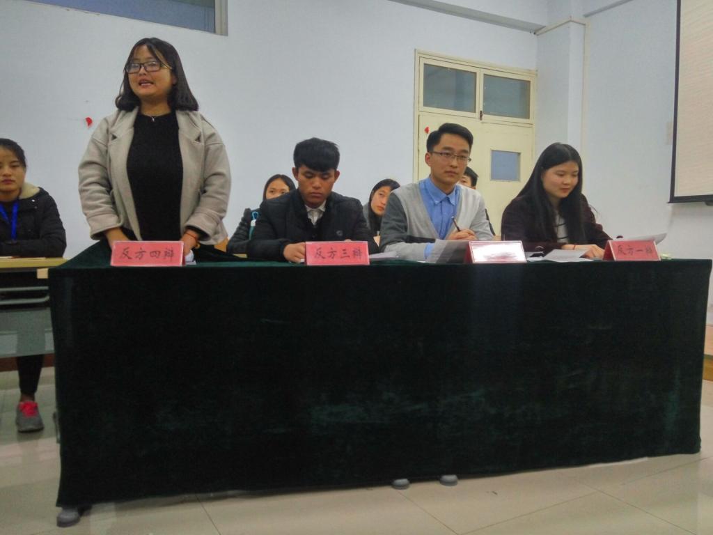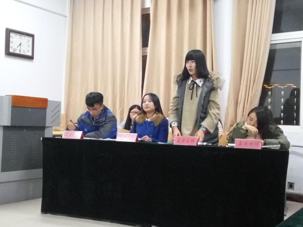 11月24日晚七点,商学院辩论赛半决赛第二场于A14-508教室成功举办。此次辩论赛由焦路瑶主持,辩论队队长李凯及成员付晓丰、褚文妍、马广悦、谢琳、庄国庆担任评委。