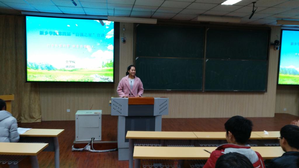 为了引导大学生树立的人生价值观,弘扬自强自立精神,11月27日,机电工程学院在A05-101教室开展自强之星候选人宣讲活动,机电工程学院16级学生参加此次活动。