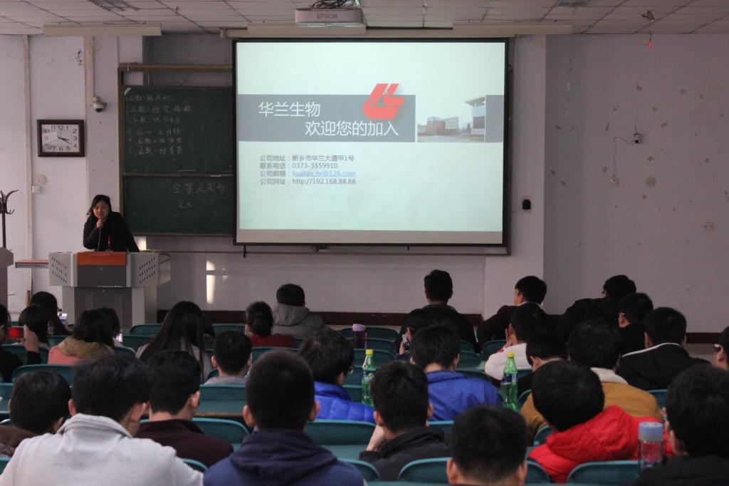 为了更好地引导毕业生就业,搭建学校与企业双向选择的平台,11月29日,生命科学技术学院特邀请华兰生物公司来新乡学院召开了专场招聘会。下午2:30招聘会在A05-208教室准时开始。生命科学技术学院有就业意向的毕业生参与了此次招聘会。