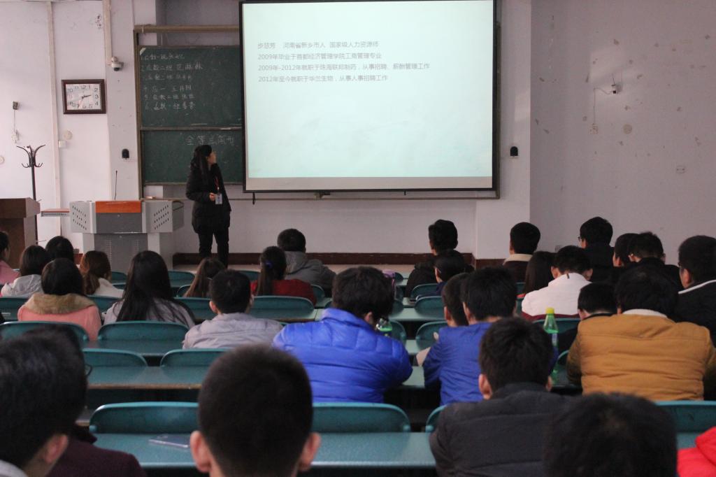 此次招聘会分宣讲和报名两部分。主讲人先介绍了自己的从业经历,让大家作参考,然后讲了就业的选择方式和基本原则。同学们认真的听着讲解,积极地与主讲人互动,现场气氛热烈。最后,主讲人以一部短篇作为结尾,结束了此次宣讲。然后大家去领了报名表,准备报名面试。