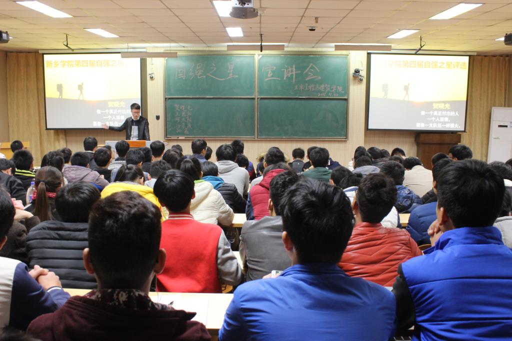 为引导、激励广大学子树立正确的价值观,弘扬自强自立精神,土木工程与建筑学院于11月30日在A05-101报告厅举行了“自强之星”宣讲会。土木工程与建筑学院各班学生代表仔细聆听了此次宣讲会。由学生干部余少华主持。