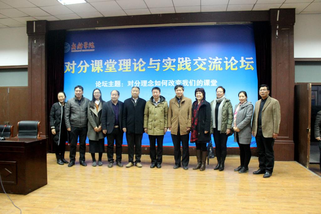 为进一步推进对分课堂教学模式的实施、交流经验体会,由新乡学院主办、教育科学学院承办的对分课堂理论与实践论坛于12月18日下午2点30分在A01学术报告厅举行。此次论坛的主题为“对分理念如何改变我们的课堂”,与会人员有对分课堂创始人复旦大学心理系博士生导师张学新教授、新乡学院副校长吴中教授、教务处处长夏锦红教授、教学督导办董洁茹主任、教育科学学院党总支书记丁西省教授、院长杜丽娟教授以及部分兄弟单位和实习基地的领导、老师。