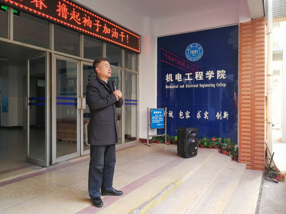 为了丰富同学们的课余生活。2月25日上午8点,机电工程学院在A06楼前召开团体操训练动员大会,党总支书记赵素琴、副书记王保学、团总支书记杜川、辅导员李志红及200名学生参加了此次大会。