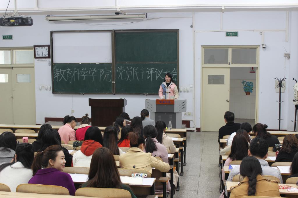为深入贯彻落实党的十八届六中全会精神,按照《中共河南省委组织部关于在“两学一做”学习教育中召开专题组织生活会和开展民主评议党员的通知》(豫组通〔2016〕61号)要求,根据《中共新乡学院委员会关于在全校党员中开展“学党章党规、学系列讲话,做合格党员”学习教育的实施方案》(院党字〔2016〕40号),教育科学学院学生党支部于3月4日下午5点在A11-225教室召开党员民主评议大会。