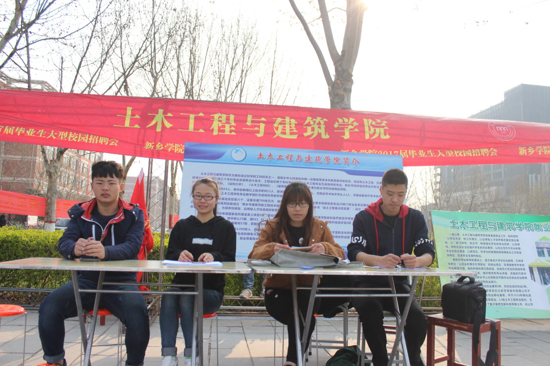 为切实做好土木工程与建筑学院毕业生就业工作、大力构建毕业生与用人单位的交流平台、积极为用人单位输送应用型人才,土木工程与建筑院于3月28日参加了新乡学院在国旗广场举办了校园招聘会。党总支书记黄家骏、党总支副书记和存龙、毕业班辅导员亲临会场指挥并与用人单位进行交流。