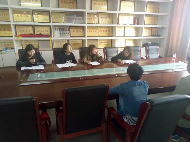 为了更好的培养学生干部,提高大学生的思想道德素质。4月6日至4月7日中午,商学院于A03五楼会议室组织青马班第二轮面试,此次面试由温敬敬、王扬扬、刘博语、潘宇老师,团副金薪主持,共有六十三名同学参加面试。