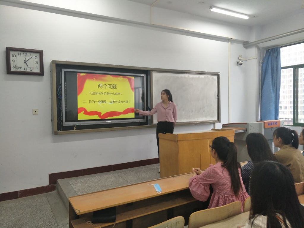 首先,团支书以共青团团歌引入,给同学们介绍了共青团的性质,历史及作用,带领团员同学们学习团章、团史和团内相关文件。活动中,全体团员举起右手面对团旗庄严宣誓,重温入团誓词,一字一句铿锵有力,充分表达出团员们团结一致,恪守团员承诺的决心。除此之外,团支书以互动提问的形式,使学生进一步了解团旗、团徽的历史背景。与会团员们踊跃参与,边听边记。接着,班长作为优秀团员发表讲话,他鼓励同学们“要牢记使命和责任,以老一辈无产阶级革命家的伟大精神为指引,不忘初心,坚定理想信念。大力弘扬求真务实、敢于担当的精神,以更加饱满的精神、更加优异的成绩,践行对共青团的庄严承诺。”最后,同学们进行了热烈的交流讨论,团员们纷纷表示“这是一场心灵上的洗礼,更是行动上的鞭策,通过重温入团誓词,深深感受到了团员的责任和使命。”晚上6点,主题班会圆满结束。