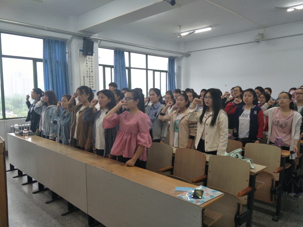 为了不断提高广大团员青年的归属感和认同感、切实增强团员的荣誉感。文学院于5月3日下午5点在A01教学楼多个教室同时召开“重温入团誓词,不忘初心跟党走”主题班会。16级全体学生积极参与了此次活动。