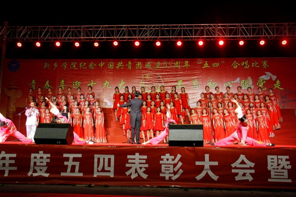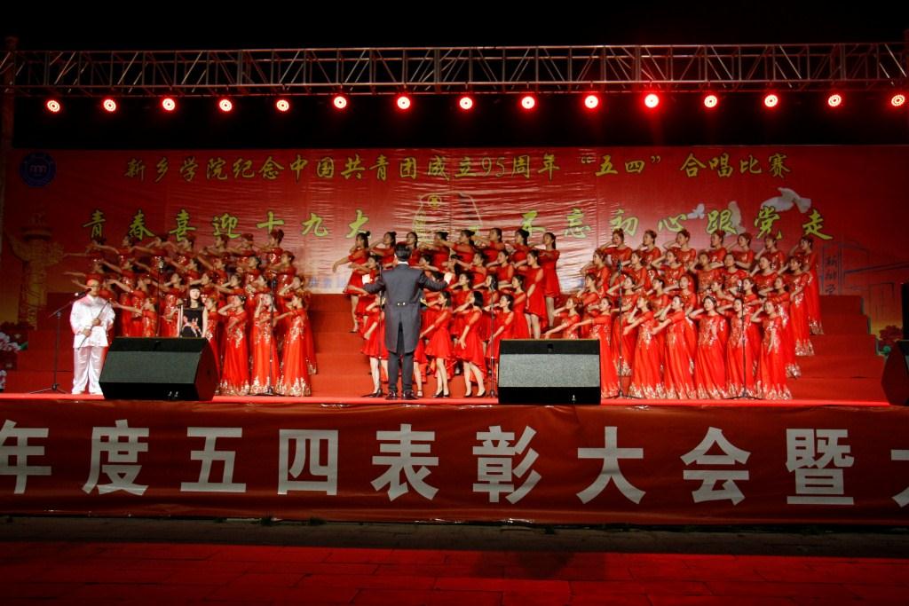 为了继承和弘扬五四精神,引导青年牢固树立理想信念,提高当代大学生思想觉悟。新乡学院校团委于5月5日晚上7点在国旗广场举办了以“青春喜迎十九大,不忘初心跟党走”为主题的“五四”合唱比赛。学校各部门、各院系领导老师出席了此次活动。