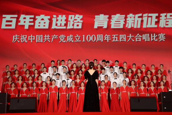表彰大会结束后,庆祝中国共产党成立100周年“百年奋进路 青春新征程”五四大合唱比赛正式拉开了序幕。4位分团委书记“变身”党史领学人依次登台,为大家深情讲述每一段时期的历史背景及每一首红歌背后的故事,来自全校22个学院的合唱团用故事讲述和歌曲演唱的形式,以中国共产党百年历史中的四个时期为背景,通过开天辟地、改天换地、翻天覆地、惊天动地四个壮丽篇章,为全校师生生动地展现了中国共产党100年来带领全国各族人民不断推进革命、建设、改革、复兴伟业,逐步实现救国、兴国、富国、强国奋斗目标的伟大历程,为全校师生带来了一场走“新”的视听盛宴。